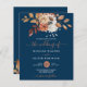 O orçamento cai aquarela floral no convite de casamento azul marinho. Personalize nomes, datas e informações.