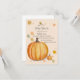 Apresentamos o nosso encantador convite "Fall Pumpkin Chá de fraldas", concebido para captar o confortável calor e o encanto rústico da estação do outono. Celebre a chegada iminente da sua abóbora com este belamente elaborado convite, com uma ilustração de abóbora cercada por folhas caídas e delicada folhagem de outono. Perfeito para um chá de fraldas que abraça o espírito da estação, este convite dá o tom perfeito para um encontro de coração cheio de amor e alegria. Personalize o texto com seus próprios detalhes personalizados, desde o nome do bebê até a data e local do evento, garantindo que todos os aspectos do convite reflitam o estilo exclusivo de sua celebração. Quer você esteja hospedando uma reunião ao ar livre no meio das folhas em mutação ou um caso confortável da lareira, este convite promete deliciar convidados e estabelecer o palco para uma ocasião memorável. Impresso em estoque de cartolina de alta qualidade, cada convite apresenta qualidade e artesanato excepcionais, garantindo que seus hóspedes ficarão impressionados a partir do momento em que receberem seu convite. Com o seu charmoso design e talento de outono, o nosso Convite "Chá de fraldas de Abóbora-Queda" é a forma perfeita de celebrar a chegada do seu pequeno e chá-os com amor e bençãos enquanto se preparam para fazer a sua grande estreia.