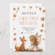 Queda Fada Primeiro Convite de Aniversário com Raposa e Pixinho com asas e folhas de outono