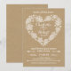 Elegante contudo ocasional, este convite do casamento é perfeito para todo o amante de natureza. As folhas estilizados, os pinecones, as bolotas, as setas, e as flores do laço formam um coração com um fundo rústico do olhar do papel de embalagem. Personalize com seu próprio texto. Ilustração original pelo pj_design. Verifique por favor minha loja para ver se há mais como esta.