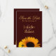 Casamento Salve o Anúncio de data com fotografia de girassol. Você pode facilmente alterar a fonte, cor, tamanho e posição do texto clicando no botão personalizar. Este convite usa papel básico - papel matte de 110 lb com peso de cobrir de 50%. Personalize-o e escolha entre 6 tipos de papel.