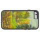 aquarela na seda - equipamento manual. Ouro de outono.Sol quente abre caminho através das folhas de carvalho.Artista de Zolotareva.