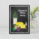 O Partido na moda do Queijo e Vinho convida com gráficos adoráveis de vinho, queijo grande, cebola e uva com um efeito divertido de quadro de chanfra. Um convite muito convidativo para comemorar um aniversário ou qualquer ocasião chega a isso, porque quem precisa de uma desculpa para consumir queijo e vinho!