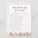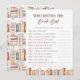 Comemore a noiva a ser com este charmoso Cartão de Jogo "Quem Conhece a Melhor Noiva", perfeito para um chá de panela minimalista com um livro de histórias, jardim ou tema de casamento rústico. Este elegante design preto e branco apresenta delicados florais de aquarela, toques suaves de eucalipto e sotaques sutis de borboletas, fazer-o como uma escolha de na moda e eterno para os jogos de festa do chá de panela. Este jogo de chá de panela convida os hóspedes a adivinhar fatos divertidos sobre a noiva, fazer-o uma maneira moderada de compartilhar memórias com a noiva e o riso de faísca. Uma obrigação para os jogos de chá de casamento que todos vão desfrutar, de mães a damas de honra. Perfeito para um chá de jardim de vassoura, chá de casamento de flor silvestre ou chá de panela floral clássico, este cartão de jogo combina lindamente com qualquer coleção de jogos temáticos de livros de histórias.