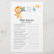 Ponha o conhecimento dos seus convidados à prova com este divertido jogo "Quem conhece melhor a Mamãe?"! Decorado com animais da floresta como a raposa, o macaco e a girafa, é uma forma excelente de rir, se unir e celebrar a futura mãe.
