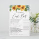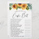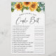 Folha de jogo "quem sabe o melhor casal" com uma aquarela alegre de girassóis e eucalipto verde sábio e um roteiro na moda. Personalize as perguntas e adicione o nome da noiva e a data do chá no verso.
