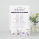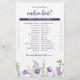 Folha de Jogo de Chá de panela Personalizado Floral Roxo: Ela Preferencialmente? Quem conhece melhor a noiva? Jogue esse jogo com seus convidados de chá de panela, e descubra quem a conhece melhor? Você pode editar todas as perguntas sobre isso para personalizá-lo para a noiva! Você pode até mesmo mudar isso para fazer um jogo de chá mudando a "ela" para "eles". Peça aos seus convidados que deem as respostas corretas...o convidado com as vitórias mais corretas! Este design apresenta flores silvestres roxas e lavandas com verde. Clique em "Personalizar mais" para editar mais detalhes.