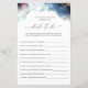 Tenham um chá de panela bonito e divertido com nossos jogos de chá de panela coordenadores! Cartões de jogos "Como você conhece a Noiva a Ser" com uma bela cor d'água estrelada noite estrelada, constelações do céu e detalhes modernos de caligrafia manuscrita. Capacidade de alterar as perguntas usando as caixas de texto modelo. Personalize as costas com seu nome e data. Qualidade do papel do tipo folheto. Uma folha é igual a um cartão de jogo. Design correspondente aos nossos Convites de chá de panela Celestiais. Também estão disponíveis mais jogos correspondentes. Parte da nossa coleção "Mystic Garden Celestial" com muitos produtos de coordenação disponíveis. Visite toda a coleção em: https://www.zazzle.com/collections/mystic_garden_celestial_collection-119823869554047930 (os convites para Chás de panela e jogos estão localizados na parte inferior da coleção).