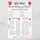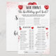 Envolva os convidados do seu partido com o melhor jogo de perguntas de aniversário! Comemore no estilo e faça todos rindo com nosso jogo "Quem conhece melhor a garota de aniversário?", agora em um design vermelho impressionante. Perfeito para qualquer festa de aniversário de adolescente ou adolescente, este conjunto impresso traz um salto de cor para as festividades. Desfrute de descobrir diversão e risos através de perguntas personalizadas sobre seus filmes favoritos, livros, e divertir essas escolhas.