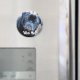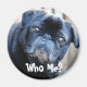 Um pug preto malvado sendo pego no pote de biscoito.