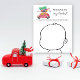 Um belo carro vermelho em uma aquarela e carregares estilo lápis e uma árvore de Natal. Celebre o grande dia com "Carro de Árvore de Natal". Chá de fraldas de inverno. Itens correspondentes disponíveis.