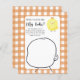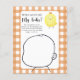 "Um pequeno frango está a caminho". Celebre com esta festa de chá de fraldas de galinha de cartoon! Pintinho bonitinho de aquarela com cara de bebê. Gaiola laranja.