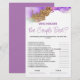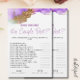 Quem conhece melhor o Casal? O Jogo de Chás de panela Roxos é uma forma divertida e interativa de celebrar noiva e noivo enquanto se envolve com convidados. Projetado com um tema na moda púrpura, este cartão de jogo apresenta uma série de perguntas leves sobre o casal, encorajando risos, memórias e competição amigável. Perfeito para chás de panela, festas de noivado ou eventos do casal, ele adiciona um toque pessoal e ajuda os hóspedes a se sentirem mais conectados à história de amor que está sendo celebrada. O elegante design e o formato lúdico fazem dele um guardião e um aplauso de multidão.
