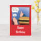 Vamos. Viva um pouco. Tenha algumas batatas fritas e deseje a alguém um feliz aniversário com esta carta estúpida com um desenho de uma cara prestes a ter um hambúrguer enorme com um empregado perguntando "quer batatas fritas com isso?" num fundo vermelho brilhante. A mensagem de dentro diz "É o seu aniversário, pode dar um pouquinho." Personalize o dentro com sua própria mensagem e torne-o ainda mais estúpido.