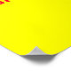 "Quer honestidade? Pergunte a uma criança!" em texto preto e vermelho, sobre um fundo amarelo brilhante com borda negra.