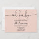 Um convite de chá de fraldas simples e elegante. Script elegante preto num fundo rosa pálido.