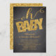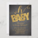 Chá de fraldas moderno Glitter convite com tipografia Oh baby in gold FAUX glitter colocado sobre um quadro negro elegante, contemporâneo e na moda. Sacudir o nosso chá de fraldas neutro em relação ao gênero para ver um brilho de ouro correspondente para um toque especial extra. Perfeito para um chá de fraldas de garotas de tendências, chá de fraldas de garotos ou chá de fraldas neutro em gênero. Visite o nosso compro para ver este convite com uma variedade de cores!