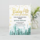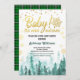[Todo o texto é editável exceto "Baby It's Fold Outside"] Tema: Floresta de inverno. Estilo: Elegante, Boho. Cores: Verde, branco, ouro. Gráficos: Pinheiros de floresta aquosa, falso flocos de neve de ouro.