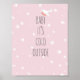 NewParkLane - Poster de Natal bonito com um pássaro pequeno, um fundo cor-de-rosa macio com um impressão de bola de neve e uma citação romântica: 'Bebê está frio lá fora' na tipografia moderna, escrita à mão.
