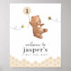 Um urso doce segurando um design de balão de creme, com abelhas e favos de mel ao seu redor. Perfeito para o seu urso, o primeiro dia de festa! Você pode alterar o número 1 no balão para qualquer número e editar todo o outro texto ou remover o número, se preferir.