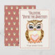 Cartão de Dia dos Namorados fofo e clássico para crianças em sala de aula ouriço. Namorado, você é o mais doce! Fácil personalização com o nome da criança. Coruja rosa e marrom e design de coração.