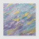 Quiet Reign is an abstract piece defined by its soothing, cool color palette and energetic brushwork. The painting features diagonal sweeps of soft lavender, tranquil aqua, and deep violet, punctuated by bold, shimmering metallic gold accents. The overall effect is one of serene motion, like a gentle rain shower illuminated by a hidden golden light. This artwork adds a touch of modern, peaceful sophistication to any space or product.