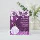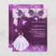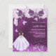Para uma Quinceañera elegante. Um fundo púrpura incolor. Decorado com confete, calçados de dedos de bailarina, borboletas, rosas e uma garota de vestido. Personalize e adicione um nome, idade/texto e detalhes da parte. O nome é escrito com um script de estilo manuscrito. 1 folha = 1 convite impresso de borda a borda.