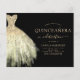 Orçamento Preto e Dourado Faux Glitter Sparkle Girly Quinceanera Party Sequestrou Convite de aniversário de 15 de Vestido. Este é o convite perfeito para a Celebração da Quinceanera da Menina para uma elegante e moderna Quinceanera Dourada. Entre em contato com o designer para encontrar itens personalizados correspondentes.