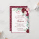 Um convite para a Quinceanera com um vermelho burguês, brilhante e design floral