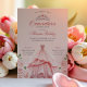 O vestido cor-de-rosa de Quinceanera Silver Convite Floral Elegante Quinceañera convite com um vestido cor-de-rosa com delicados rosas de aquañera. Uma design romântica, perfeita para 15 celebrações. Totalmente personalizável.
