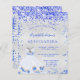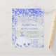 Um fundo de olhar mal prateado. Decorado com confete azul real, brilhos. Personalize e adicione um nome e detalhes da parte. O nome é escrito com um script de estilo manuscrito.