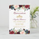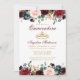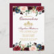 Cartão de Convite para Quinceanera Azul Burgundy - Azul Floral e Dourado - Borgonha de Volta