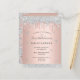 Um convite de inverno moderno, na moda e glamouroso para uma Quinceañera, festa de aniversário 15. Um fundo metálico de rosa dourado falso com aspecto elegante rosa dourado, cor-de-rosa e brilhante prateado falso, aparência de pingar. Decorado com falso flocos prateados de neve, cristais de neve. O nome é escrito com um moderno script de estilo colorido de cinzas. Personalize e adicione um nome, idade e detalhes de sua festa. Dica: Se você não quiser que pareça um cartão postal, clique em personalizar, vá para o verso e remova o divisor e o carimbo de posto.