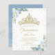 Elegante brilho dourado tiara azul-claro barato floral quinceanera convites de 4,5"x5,6". NOTA: OS envelopes NÃO ESTÃO INCLUÍDOS; os envelopes A7 correspondentes estão disponíveis para serem comprados separadamente.