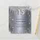 Um convite moderno, na moda e glamouroso para a Quinceañera, festa de aniversário 15. Um fundo com aparência de prata falsa, decorado com poeira brilhante. Personalize e adicione o seu nome e detalhes da festa. O número 15 é escrito com uma fonte de estilo balão, script.
