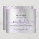 Uma garota e moda Salve o cartão de data para uma Quinceañera, 15 festa de aniversário. Um fundo prateado moderno, decorado com brilho violeta e um vestido. Personalize e adicione uma data e nome/idade. Letras pretas e roxas coloridas. O texto: Salvar a Data é gravado com um script de estilo com letra de tendência grande.