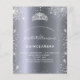 Para um elegante aniversário de 15 Quinceañera. Um fundo de olhar mal prateado. Decorado com pó de brilho falso e uma tiara, coroa. Personalize e adicione um nome e detalhes da festa. O nome é escrito com um script de estilo manuscrito