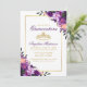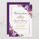 Cartão de Convite para Quinceanera, Floral Ultra Violeta Puro e Dourado, a Aquarelas - Parte Traseira Roxa