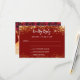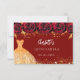 Frente: Um fundo vermelho decorado com falso brilho dourado, faíscas. Personalize e adicione seu nome e datas. Trás: um vestido de ouro e rosas vermelhas.