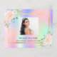 Um cartões de agradecimentos giro e elegante com foto. Um arco-íris, fundo holográfico em rosa, roxo, azul e verde-menta, decorado com flores. Personalize e adicione sua nota de agradecimento.