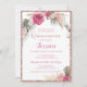 Um convite para a Quinceanera com ouro rosa, brilho e design floral boho