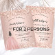 Um convite moderno, na moda e glamouroso para 2 Quinceañeras, festas de aniversário 15. Um fundo rosa de ouro com faíscas falsas, uma garota vestindo um vestido de bola. Os nomes são escritos com um moderno estilo escrito à mão. Personalize e adicione os detalhes da sua festa. Um nome em cada lado. 1 folha = 1 convite impresso de borda a borda.