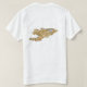 Um título e um slogan editáveis acompanham o motivo circular amarelo centrado em um fundo vermelho da bandeira kirguiz na parte dianteira deste t-shirt. A parte traseira indica um mapa detalhado de Quirguistão.