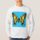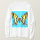 Desenho digital de uma borboleta Rabada Tigrada Oriental, mostrando suas asas pretas e amarelas contra um fundo azul.