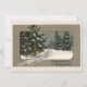 A imagem neste cartão mostra uma cena de inverno com algumas árvores e alguns coelhos com a neve descendo.