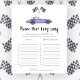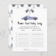 Cartão de convite para chá de fraldas do tema Race car com ilustrações de aquarela de um carro vintage roxo (violeta) e de preto - branco. "Corrida para um chá de fraldas."