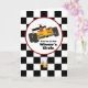 "Você está no Círculo do Vencedor" cartão de aniversário do tema de corrida para aquele pequeno bastão especial com carro de corrida amarelo esportivo em um círculo de vencedores brancos esboçado em vermelho com um fundo preto e branco com verificação de fundo ... uma escolha de excelente aniversário para qualquer garoto ou garota que ama carros e corridas.