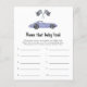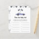 Cartão de convite para chá de fraldas do tema Race car com ilustrações de aquarela de um carro vintage roxo (violeta) e de preto - branco. "Corrida para um chá de fraldas."