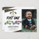 Celebre o primeiro marco do seu filho com nossos adoráveis convites para primeiros aniversarios de carros em corridas. Apresentando um simples fundo branco que complementa perfeitamente a foto do seu filho, e adorado com carros de corrida de cores aquáticas, estradas, bandeiras controladas e um troféu. Nosso rápido modelo de celebração é uma brisa para personalizar, fazer seu partido planejando um pedaço de bolo. Prepare-se para um primeiro aniversário divertido!