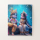 As peças de quebra-cabeça exibem o duo divino adornada em uma vibrante roupa tradicional, com a elegante graça de Radha complementando o charme divino de Krishna. O pano de fundo celeste, cheio de elementos simbólicos como penas de pavão e flores de lótus, soma-se ao encantamento da cena. Reunir essa quebra-cabeça torna-se uma experiência meditativa, permitindo que entusiastas se imergam na divina história de amor de Radha e Krishna enquanto apreciam a arte e a atenção aos detalhes. A imagem final serve como um banquete visual, capturando a essência da devoção e espiritualidade.